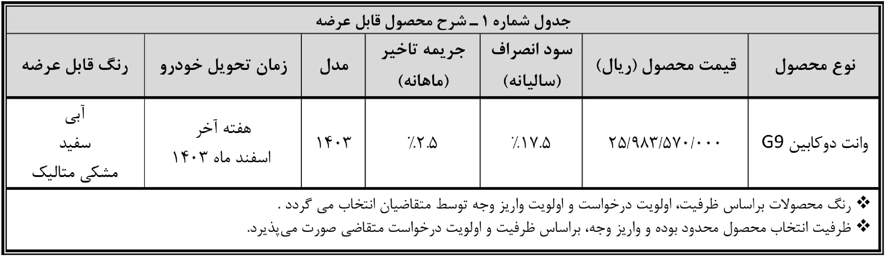 براساس بخشنامه فروش پیکاپ G9 بهمن موتور، تمامی خودروها با مدل 1403 تحویل خریداران می‌شوند. جزییات بیشتر را از لینک زیر دریافت کنید: