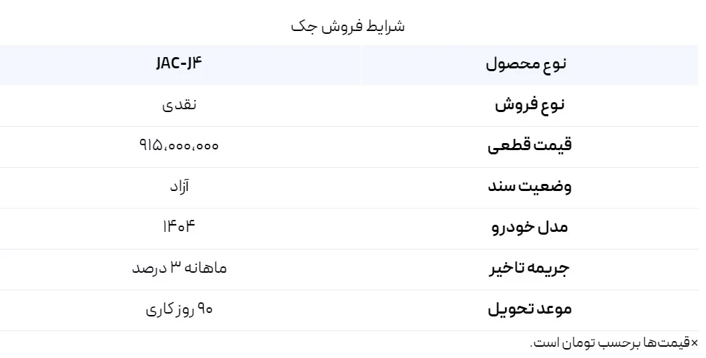 شرایط فروش جک جی 4 با قیمت جدید (PDF)