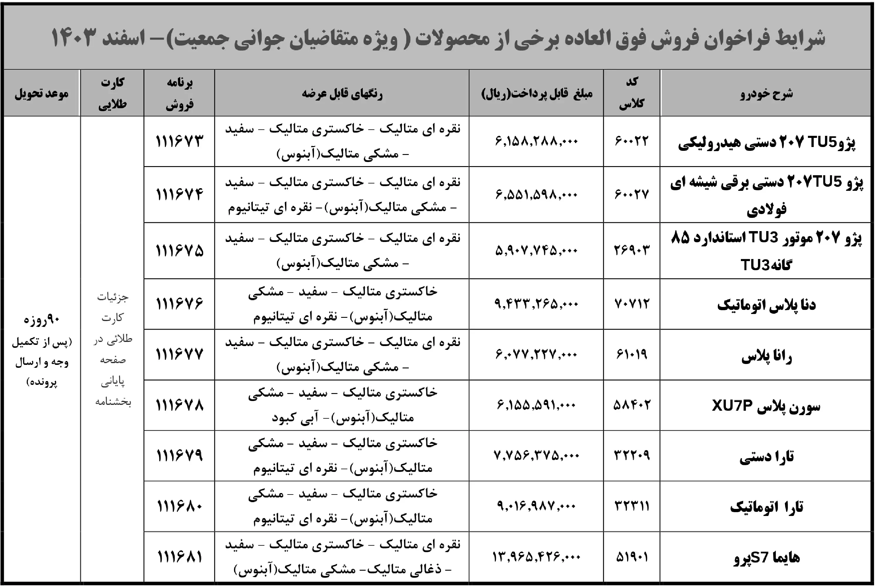 - خودروهای عرضهشده: بر اساس جدول اعلامی (که در متن اصلی اشاره شده است).