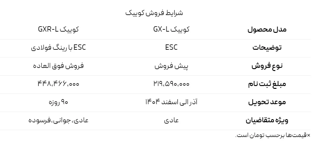 این فروش فرصت مناسبی برای متقاضیان خرید خودروی کوییک جیایکس است که میتوانند با توجه به نیاز و شرایط خود، یکی از دو طرح پیشفروش یا فروش فوقالعاده را انتخاب کنند.