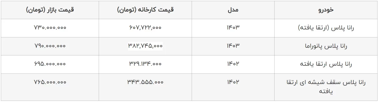 ✅ رانا پلاس ارتقا یافته جدیدترین و مجهزترین مدل است اما قیمت آن هنوز در بازار تثبیت نشده.