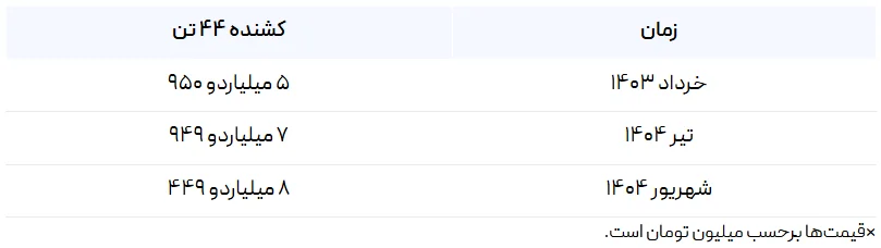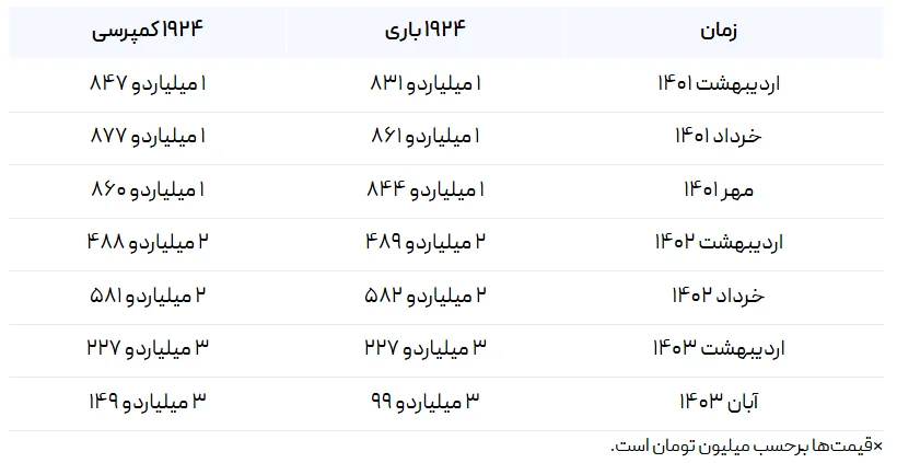 آخرین قیمت مصوب شرکت ایران خودرو دیزل برای قیمت کامیون بنز واگن هود 1924 در جدول زیر آمده است: