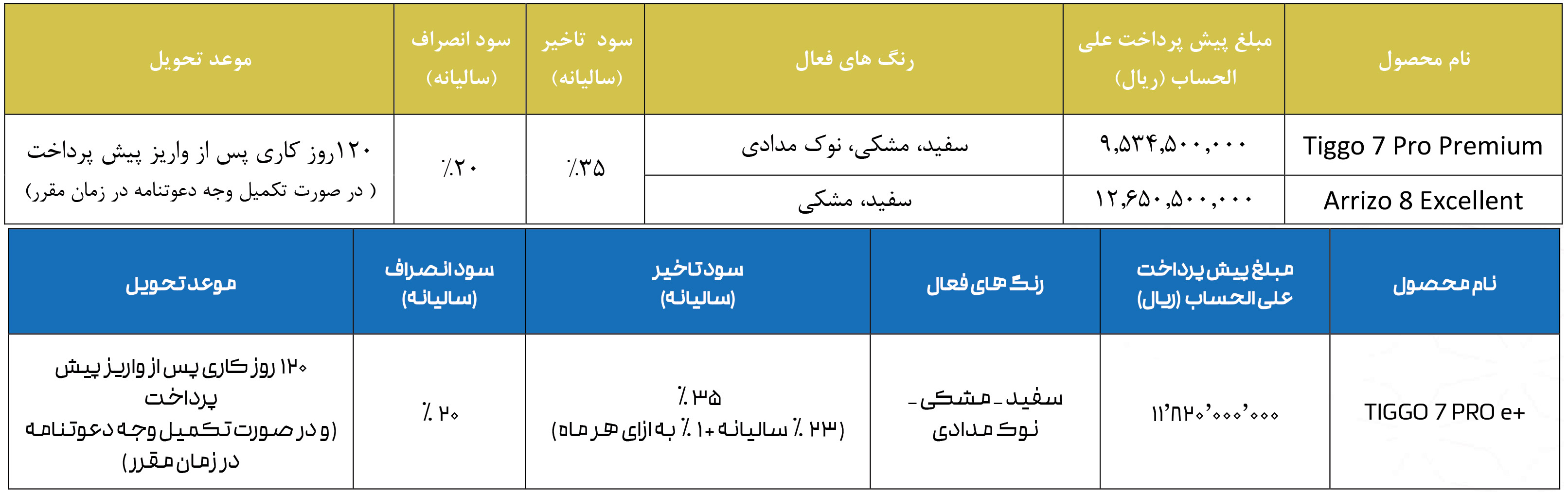 ثبت‌نام جدید برای خرید تیگو 7 بنزینی و هیبریدی و همچنین آریزو 8، از روز چهارشنبه 31 اردیبهشت 1404 طبق جدول زیر آغاز خواهد شد: