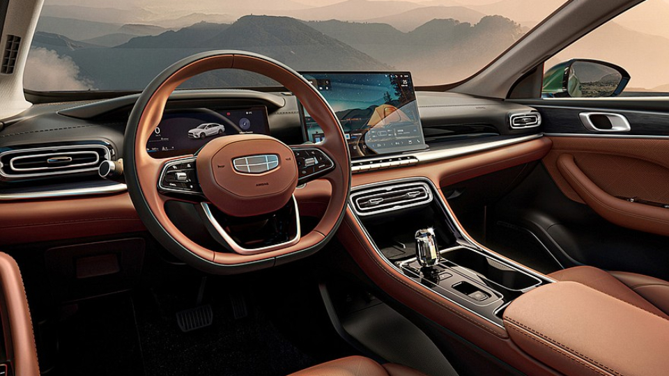 در طراحی داخلی جیلی امگرند جدید، شاهد بهروزرسانیهای چشمگیری هستیم که شامل داشبورد مدرن، پوشش داخلی درها و فرمان جدید میشود و به وضوح شباهتهایی به استارشاین 6 دارد. اما در contrast با مدل هیبرید، اهرم گیربکس در این خودرو بهصورت مرکزی در کنسول قرار گرفته است. از دیگر ویژگیهای بارز این مدل میتوان به دو نمایشگر دیجیتال مستقل، تعدادی دکمه فیزیکی و استفاده از متریال با کیفیت بالاتر نسبت به نسخهی قبلی امگرند اشاره کرد.