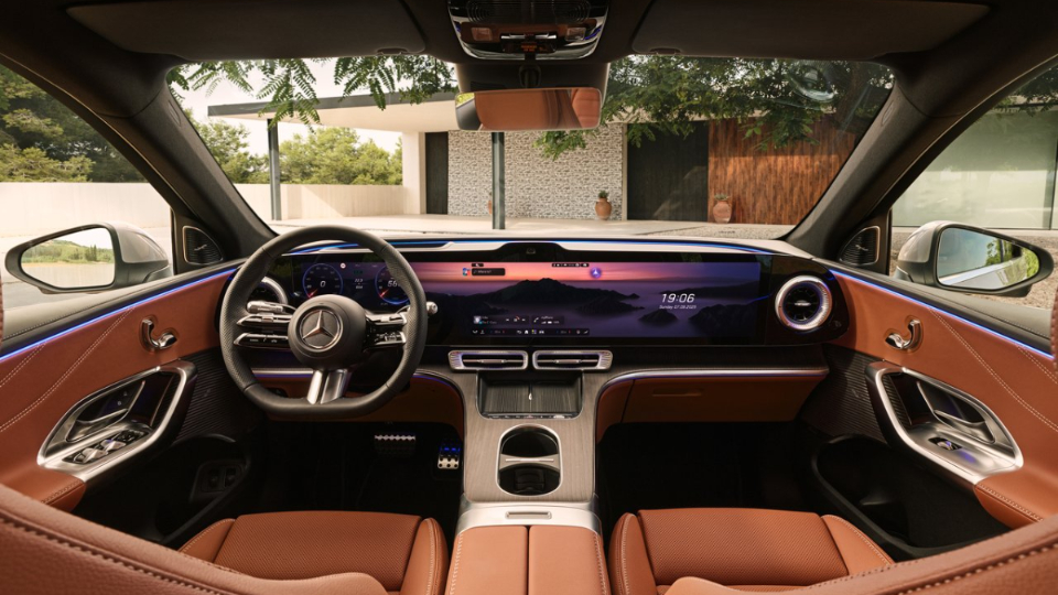 در داخل کابین مرسدس GLC برقی، با روکش چرم گیاهی که توسط Vegan Society ساخته شده، روبرو میشوید. مشتریان همچنین این امکان را دارند که چرم آلکانترا یا چرم Soft Torino را به عنوان گزینه انتخاب کنند. یک نمایشگر 39.1 اینچی که به آخرین نسخه رابط کاربری MBUX و همچنین هوش مصنوعی مایکروسافت و گوگل مجهز شده، به طور کامل داشبورد را در بر گرفته است. علاوه بر این، تعدادی دکمه فیزیکی در بخشهای مختلف مانند فرمان، کنسول میانی و پنلهای داخلی درها قابل مشاهده است.