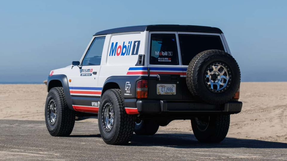 فورسبرگ به طور حتم طراحی بدنه ریسینگ پاترول را نیز در نظر گرفته و آن را با جلوپنجره و گلگیرهای مشکی هلالی زیبا ترکیب کرده است. این خودرو با رنگهای قرمز، سفید و آبی مشابه تیم Mobil 1، چراغهای مخصوص آفرود، رینگهای 17 اینچی Nismo به همراه تایرهای 35 اینچی از برند یوکوهاما و سیستم تعلیق مناسب برای آفرود تجهیز شده است.