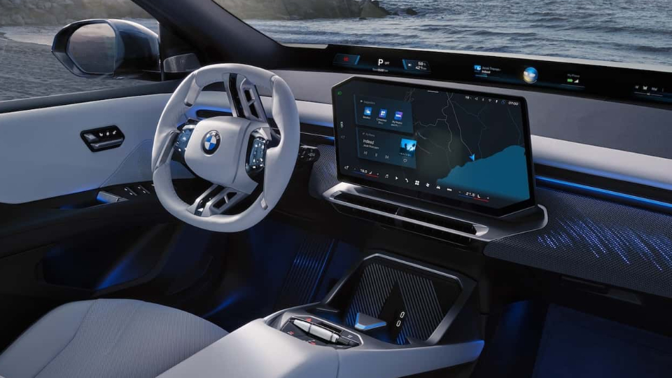 طراحی بدنهی iX3 با وجود تفاوتهایی که دارد، بهخوبی هویت برند ب ام و را منتقل میکند. اما وقتی به فضای داخلی آن نگاهی میاندازیم، متوجه ویژگیهایی متفاوت میشویم؛ از جمله صفحه نمایش گستردهای که در زیر شیشه جلو قرار دارد، نمایشگر لمسی شش ضلعی با رابط کاربری X و حذف کلید چرخان iDrive، که این عناصر در سایر محصولات این برند بهندرت دیده میشوند.