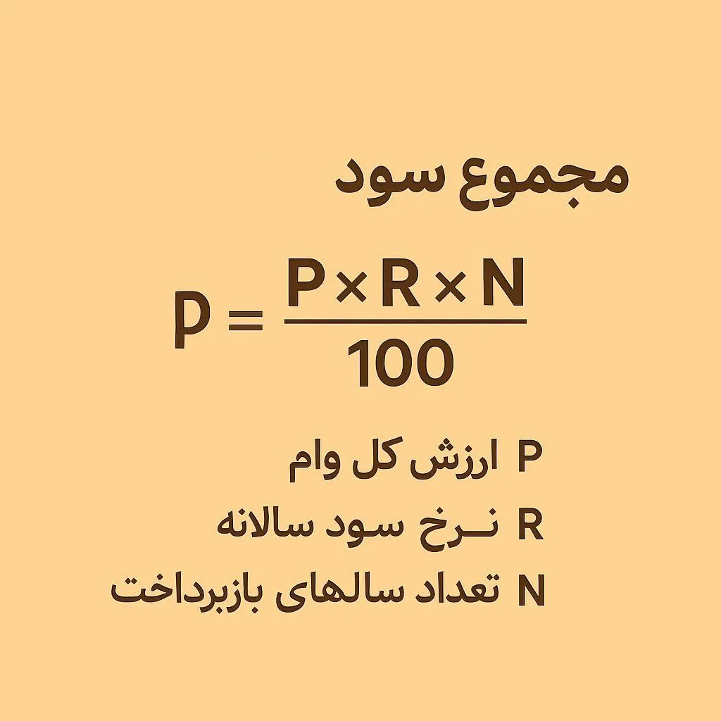 فرمول ساده محاسبه بهره در بازپرداختهای ثابت (بهره خطی) به صورت زیر است: