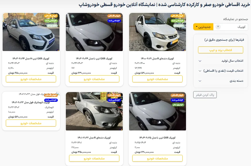 خودروهای کوییک اقساطی کارشناسی شده در نمایشگاه آنلاین خودروشاپ: