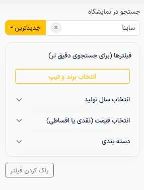 ۱. انتخاب خودرو: مدل و تیپ ساینا موردنظر خود را از بین نسخههای صفر و کارشناسیشده انتخاب نمایید.