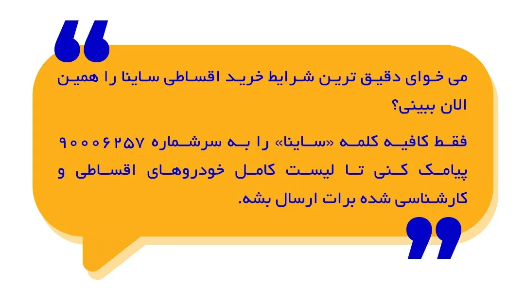 ساینا را همین امروز اقساطی بخر؛ بدون ضامن، 36 ماهه، تحویل فوری