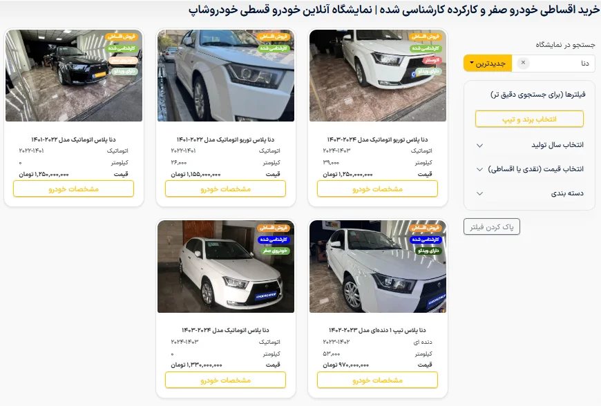 وارد نمایشگاه آنلاین شو و مدل های کارشناسی شده با شرایط خرید اقساطی برای دنا رو ببین.