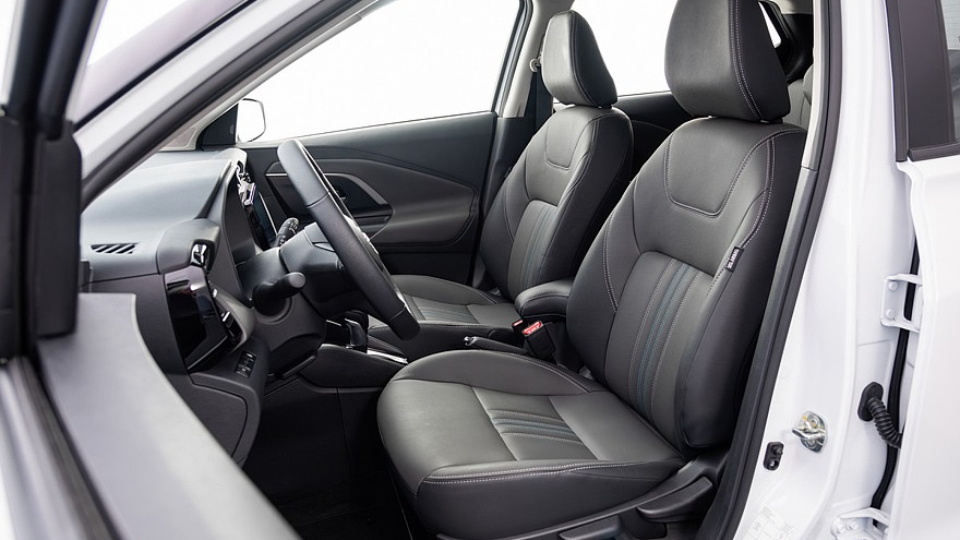 در کابین نیسان کایت، طراحی داشبورد مشابه سایر مدلهای نیسان را مشاهده میکنید، که شامل یک نمایشگر لمسی با اندازه 8 یا 9 اینچ (بسته به نوع خودرو) است. این خودرو در چهار تیپ مختلف ارائه میشود که تیپ پایه آن دارای ویژگیهای قابل توجهی از جمله چراغهای LED، روکش پارچهای، سیستم تهویه، دوربین عقب و کروز کنترل میباشد. همچنین تیپ Sense پلاس به امکاناتی مانند ترمز اتوماتیک و سیستم حفظ حرکت بین خطوط مجهز شده است.