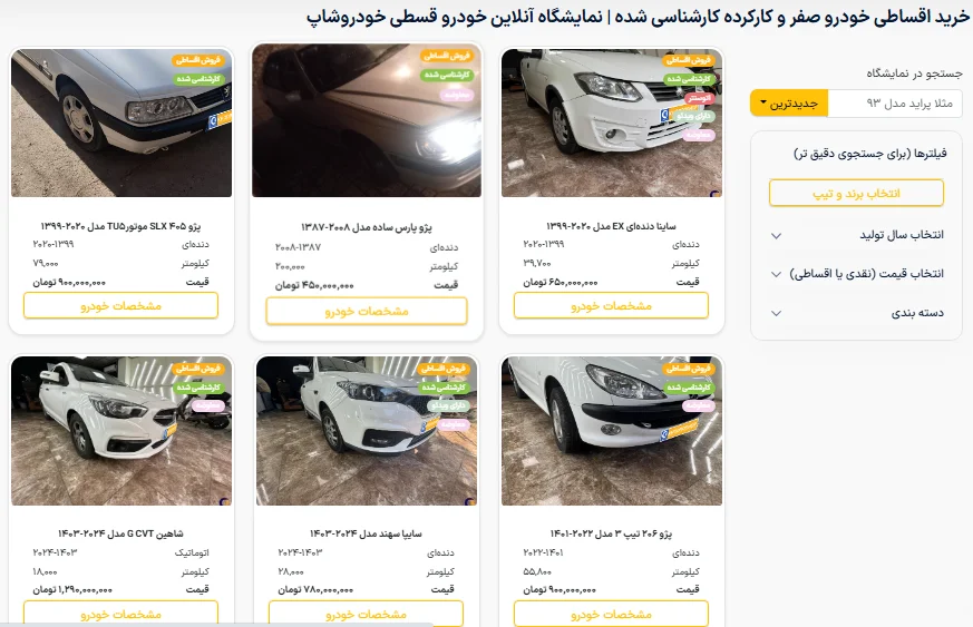 چند مورد از خودروهای کارشناسی شده با شرایط فروش اقساطی در نمایشگاه آنلاین خودروشاپ: