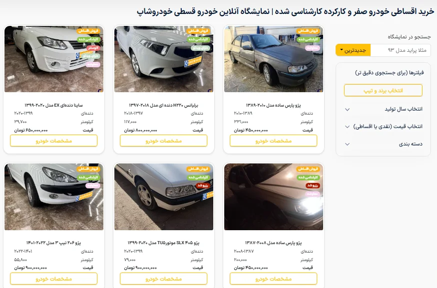 چند مورد از خودروهای کارشناسی شده با شرایط فروش اقساطی در نمایشگاه آنلاین خودروشاپ: