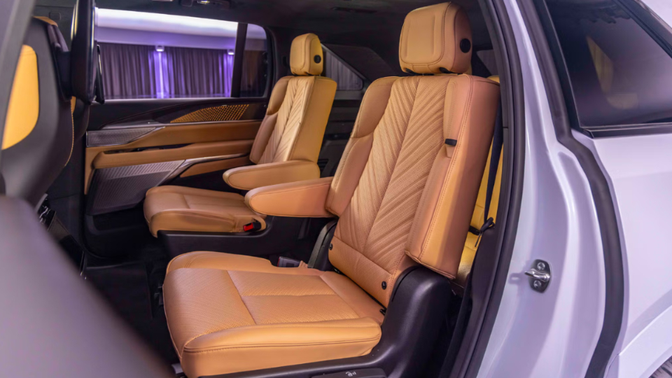 فضای داخلی کادیلاک اسکالید IQ با طراحی بی‌نظیر خود، بهترین تجربه را در میان همه نسل‌های این خودرو ارائه می‌دهد. این طراحی به طور هوشمندانه راحتی خودروهای قرن بیستم را با فناوری‌های پیشرفته قرن 21 ترکیب کرده است. از روکش‌های پارچه‌ای با کیفیت بالا و دوخت‌های زیبا گرفته تا بافت دلپذیر تریم چوب و آلومینیوم، هر جزئیات دست‌ساز و جذاب به دقت انتخاب شده است. همچنین، اجزای مشکی پیانو با کیفیت عالی و نمایشگر خمیده 55 اینچی با گرافیک کاربرپسند، فضای سرنشینان را به طور هوشمندانه تفکیک می‌کند، که همگی از ویژگی‌های بارز این بخش محسوب می‌شود.
