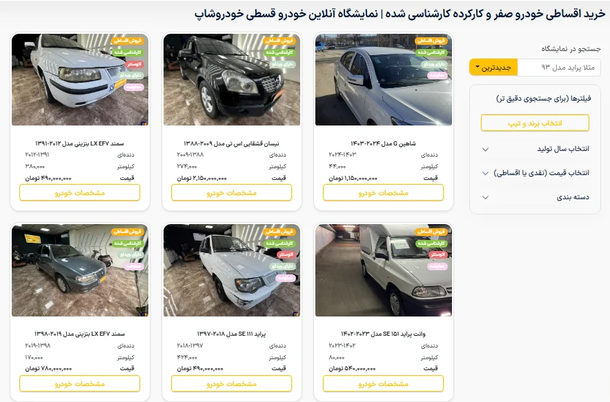 چند مورد از خودروهای کارشناسی شده با شرایط فروش اقساطی در نمایشگاه آنلاین خودروشاپ: