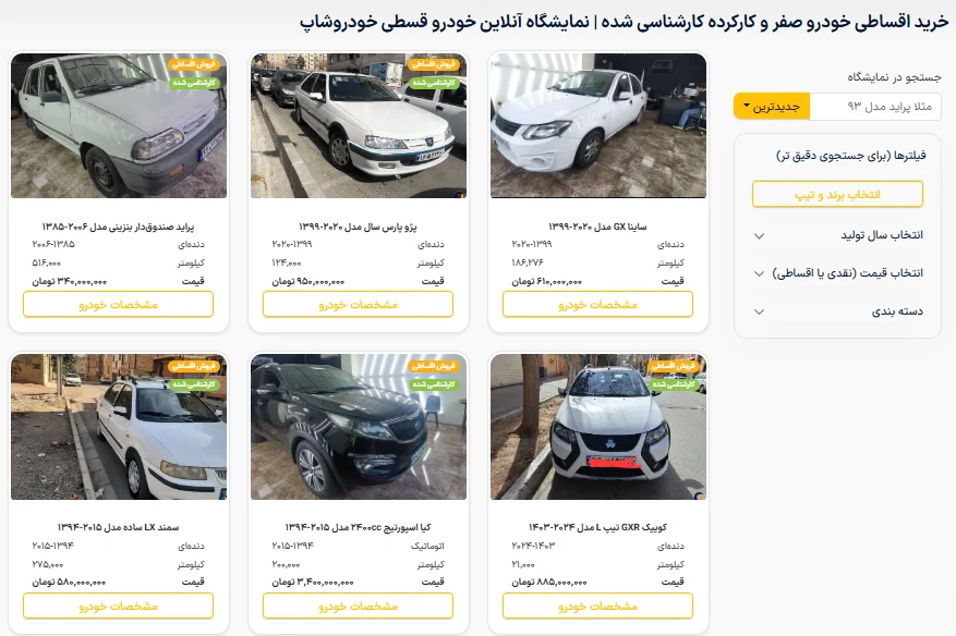 خودروشاپ برای خرید اقساطی: