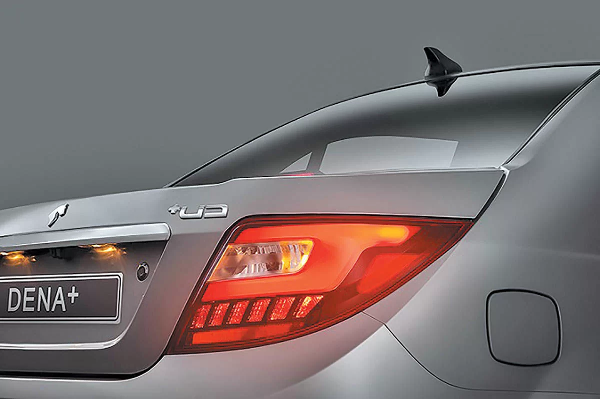 در طراحی سریع خارجی، دنا به زیبایی طراحی شده و هدف ارائه بهترین خودرو از ایران خودرو بوده است. چراغهای کشیده و اسپرت در جلو خودرو هارمونی جذابی با جلوپنجره و سپر ایجاد کرده است. دنا در جلو دارای ظاهری شیک و قابل توجه است و در قسمت عقب، چراغهای مناسب و کارآمد طراحی شدهاند که به خودروهای پیرو اطلاع میدهند. سپر پشتی خودرو به شکلی مستحکم و زیبا طراحی شده و نسبت به بدنه کاملاً هماهنگ است. همچنین فضای صندوق عقب دنا برای خانوادهها نیز کاربردی و مناسب طراحی شده است.