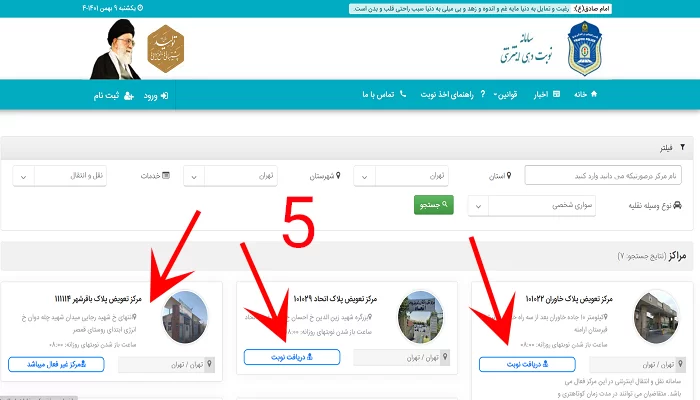 5- برای دریافت نوبت تعویض پلاک، نیازی به مراجعه به کافینتها یا پرداخت هزینه ندارید. چراکه دریافت نوبت کاملا رایگان است و حتی با موبایل خودتان هم میتوانید این کار را انجام دهید. تنها کافی است به سامانه اینترنتی نوبت تعویض پلاک به نشانی nobatdehei.epolice.ir مراجعه کرده و تاریخ مراجعه و مرکز موردنظرتان را انتخاب کنید.
